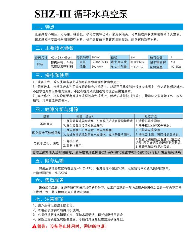 電機功率:180W電壓:~220v/50Hz流量60L/min楊程8M最大真空度0.098Mpa單頭抽氣量10L/min抽氣頭數(shù)量:2儲水箱容積:15L材質(zhì):整機外殼、泵殼、葉輪、采用防腐PP材料。外形尺寸:40*39*45cm
