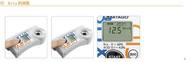 為了方便更多的農(nóng)業(yè)、水果行業(yè)的客戶快速檢測(cè)糖酸比,提供更高的測(cè)量服務(wù)和更低的價(jià)格。讓跟多的農(nóng)業(yè)和水果行業(yè)客戶認(rèn)識(shí)到不僅僅需要檢測(cè)糖度,還需要檢測(cè)酸度,最合適的糖酸比才是評(píng)價(jià)水果的最好指標(biāo)。ATAGO(愛拓)研發(fā)了這款新的糖酸一體機(jī),不僅可以同時(shí)檢測(cè)水果的糖酸比,而且不需要繁雜的操作方法和酸度測(cè)定試劑。PAL-BX/ACID1 柑橘糖度一體機(jī),又稱為柑橘糖酸比檢測(cè)儀、檸檬酸糖酸度一體機(jī)可以用來測(cè)量柑橘、橙子、蘋果等水果的糖度和果酸含量,并將其酸度以檸檬酸的多少來表示。