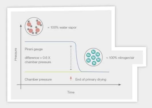 一個合適的終點標準應高于壓力波動引起的差值。該值還應足夠低,以確保在切換到下一個凍干步驟之前,兩個顯示壓力之間的差異在給定的時間內最小。