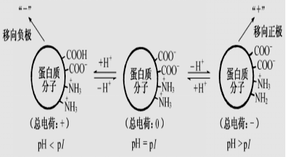 溶液的PH決定帶電顆粒的解離程度,也即決定其帶靜電荷的量。對蛋白質(zhì)而言,溶液pH值離等電點越遠,則顆粒所帶的凈電荷越多,泳動速度也越快;反之,則越慢。因此分離某種蛋白質(zhì)混合液時,應(yīng)選擇合適的pH,使欲分離的各種蛋白質(zhì)所帶的電荷數(shù)量有較大的差異