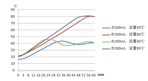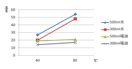 針對大龍儀器的此類產(chǎn)品,我們分別利用水和硅油作為被加熱介質(zhì),在同一溫度條件下,進行加熱實驗,所得實驗結(jié)果如圖2-4所示。