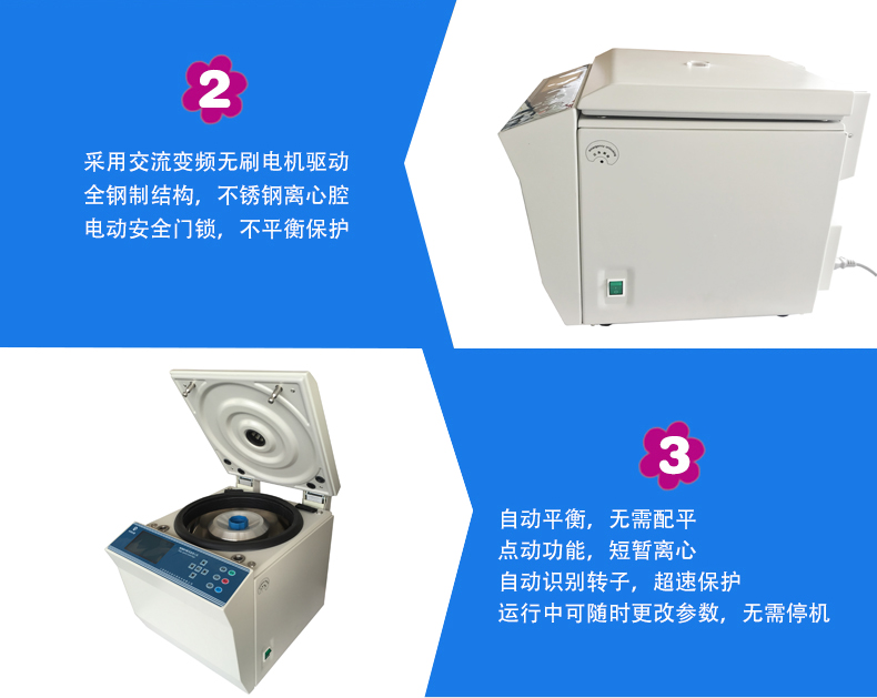 ■ 自動(dòng)平衡,無(wú)需配平,點(diǎn)動(dòng)功能,可短暫離心