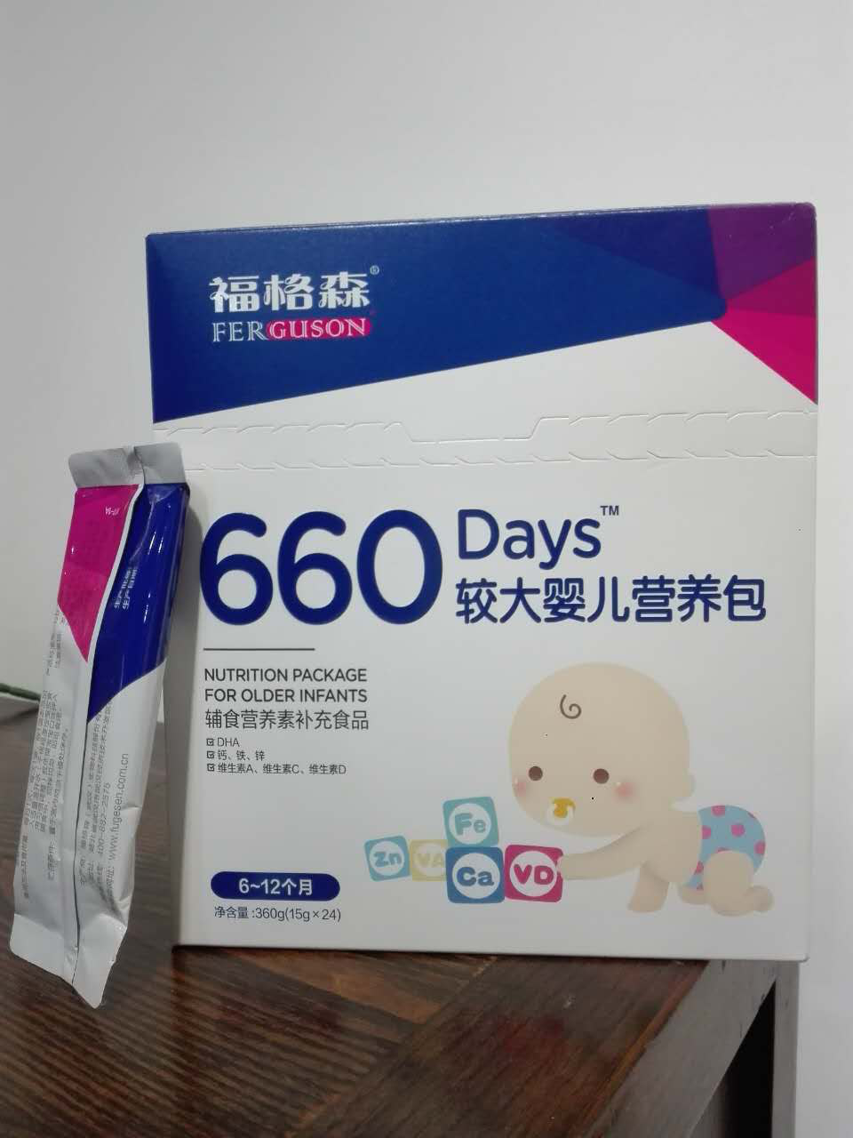 選擇合適的營養(yǎng)包也是一個挺頭疼的問題,經(jīng)過一番挑選之后,我終于選定了福格森的黃金1000天營養(yǎng)包。這是一款分階段來科學設計配方的產(chǎn)品,我給我們家5個多月大的寶寶吃的是其中的660Days?較大嬰兒營養(yǎng)包,因為它就是針對這一階段的寶寶設計的,里面含有DHA,鈣,鐵,鋅和維生素等多種嬰幼兒成長所需的微量元素,正好滿足寶寶的營養(yǎng)需求。而且它還添加了水溶性膳食纖維,能促進有益菌生長繁殖,增強寶寶的胃腸活力。我家寶寶吃這個營養(yǎng)包快3個星期了,每天都固定時間排毒拉便便,沒有試過便秘了,而且他對營養(yǎng)的吸收也快了很多,才十來天又胖了些。
