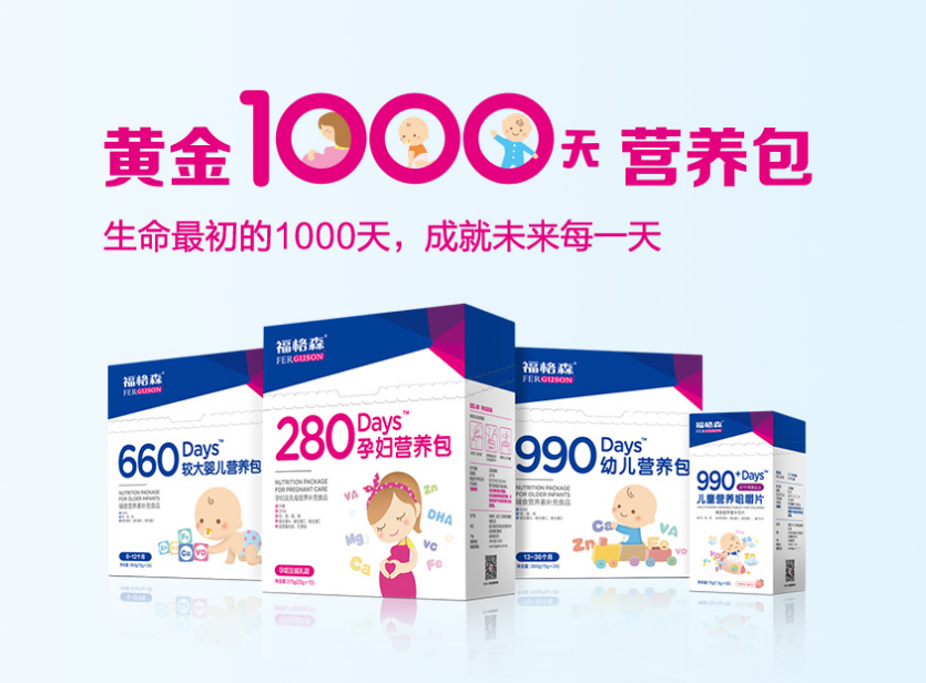 今年10月,福格森舉辦新品發(fā)布會,推出“黃金1000天孕嬰營養(yǎng)包”系列新產(chǎn)品后立即受到了廣大消費者的認可,市場反響熱烈。福格森孕嬰營養(yǎng)包非常全面,包含有280days孕婦營養(yǎng)包、660days較大嬰兒營養(yǎng)包、990days幼兒營養(yǎng)包及990+days兒童咀嚼片,在寶寶黃金1000天內(nèi)根據(jù)人體的生長發(fā)育不同階段的不同需求精準搭配核心配方。