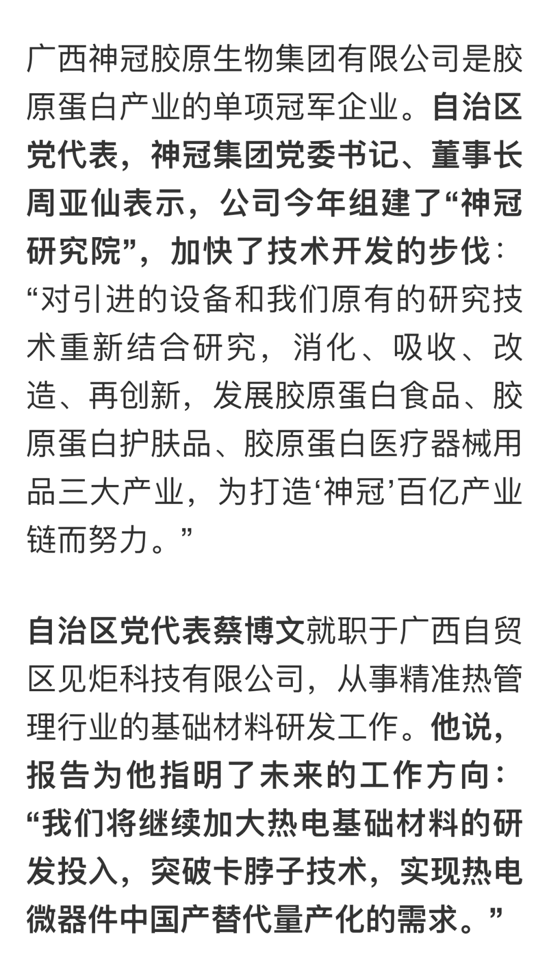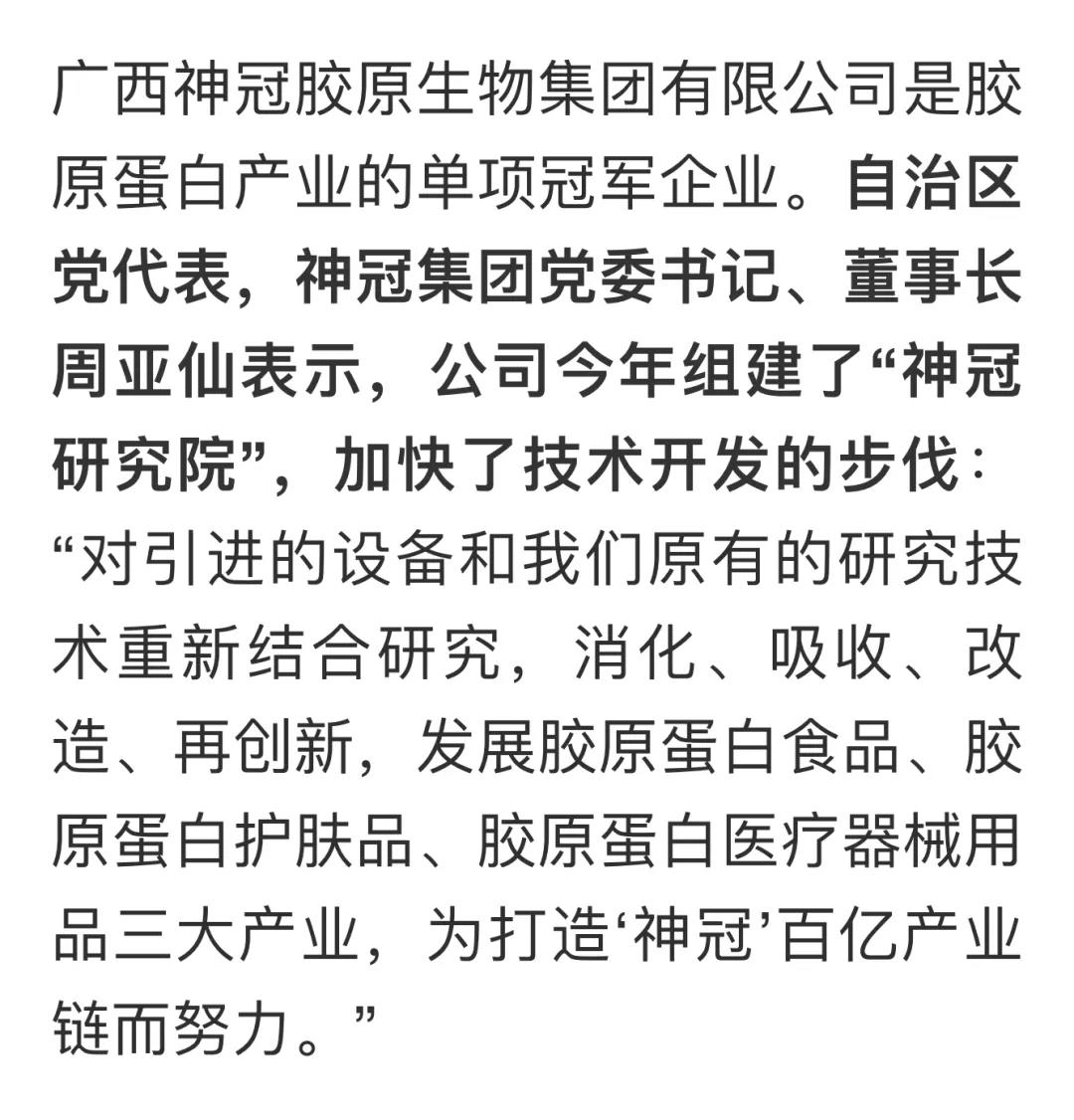 近日,廣西壯族自治區(qū)第十二次黨代會(huì)開幕,膠源秀所屬神冠集團(tuán)黨委書記、董事長(zhǎng)周亞仙,在會(huì)議上發(fā)表了相關(guān)講話。