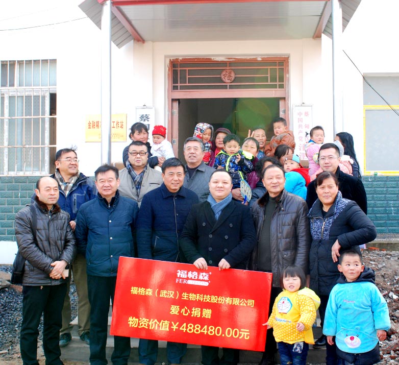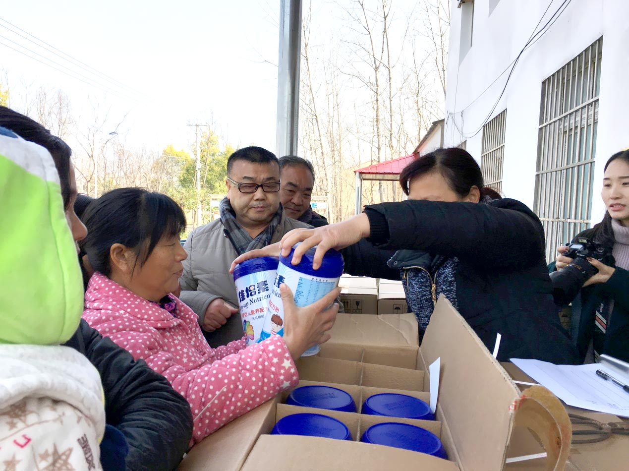 為貫徹落實(shí)“百企幫百村”扶貧項(xiàng)目,踐行“扶真貧、真扶貧”的承諾,2016年12月27日,福格森副董事長沙俊奇先生帶領(lǐng)員工攜手武漢經(jīng)開區(qū)招商局、民政局、扶貧辦、工商聯(lián)、宣傳部一行領(lǐng)導(dǎo)前往武漢市蔡甸區(qū)消泗鄉(xiāng)九溝村,給當(dāng)?shù)刎毧嗉彝和腿ケ姸喔8裆a(chǎn)品——佳培素嬰幼兒營養(yǎng)配方粉和小兒益生菌。諸多村民在接受到福格森的暖心捐贈(zèng)后,不禁喜笑顏開。