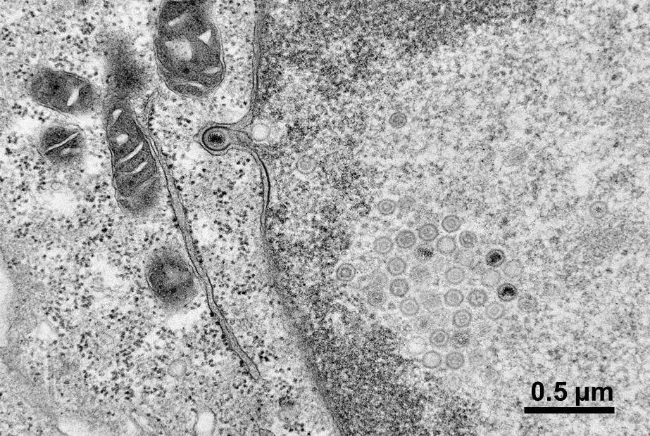 Vero細胞內(nèi)的HSV病毒(被感染細胞的組織切片)